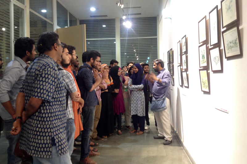 CCU curated an exhibition of pen and ink rendition of streets, squares, monuments, panorama of some of these wonderful cities of India on the occasion of World Heritage Day. These Cityscapes are works by Manu Mahajan, collectively presented as “Auraq-e-Musawwir”. This exhibition took place on 17th & 18th April, 2016 at MF Hussain Gallery, Jamia Milia Islamia, at an event organized by Kalakriti, an organization dedicated to conservation of built heritage. The exhibition was inaugurated by Prof. Talat Ahmad, Vice Chancellor, Jamia Millia Islamia, New Delhi.