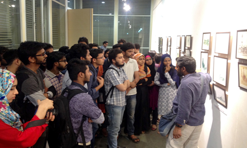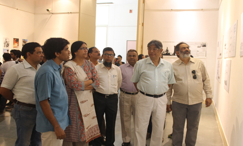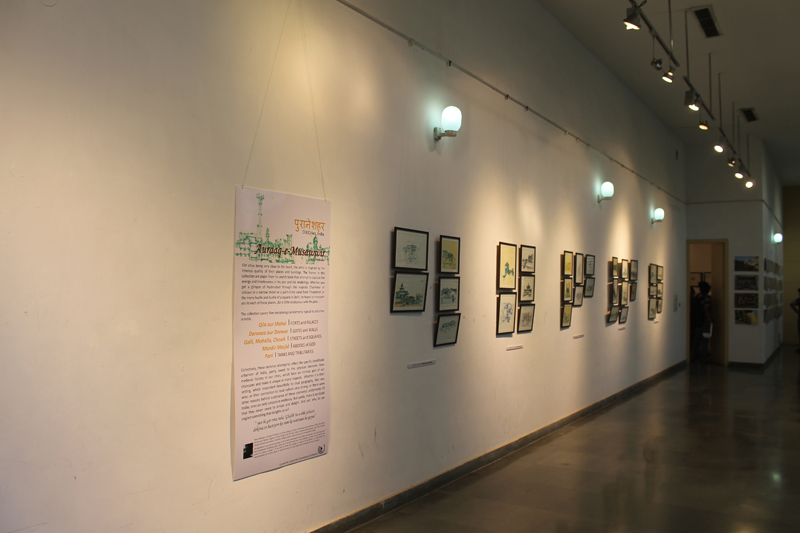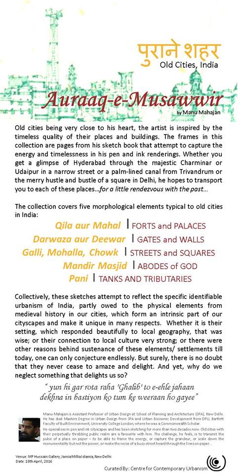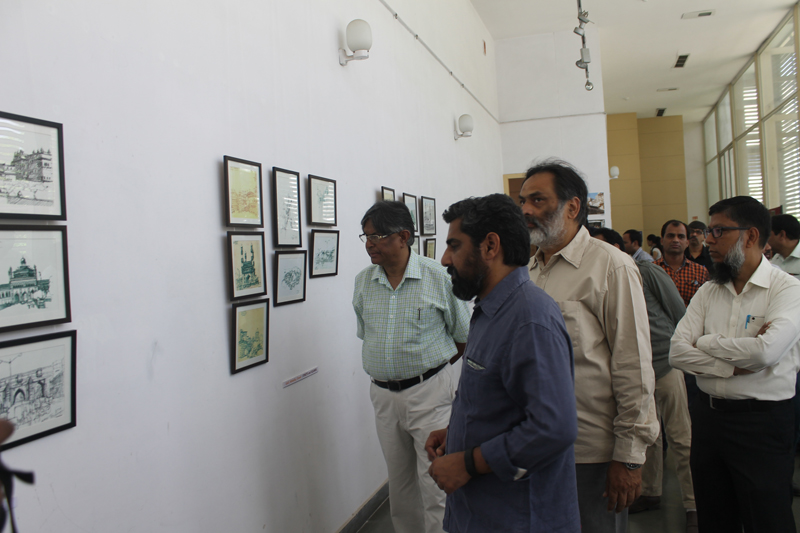 CCU curated an exhibition of pen and ink rendition of streets, squares, monuments, panorama of some of these wonderful cities of India on the occasion of World Heritage Day. These Cityscapes are works by Manu Mahajan, collectively presented as “Auraq-e-Musawwir”. This exhibition took place on 17th & 18th April, 2016 at MF Hussain Gallery, Jamia Milia Islamia, at an event organized by Kalakriti, an organization dedicated to conservation of built heritage. The exhibition was inaugurated by Prof. Talat Ahmad, Vice Chancellor, Jamia Millia Islamia, New Delhi.